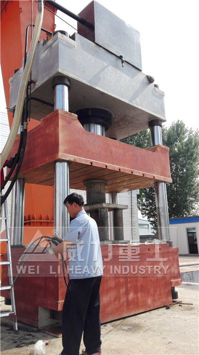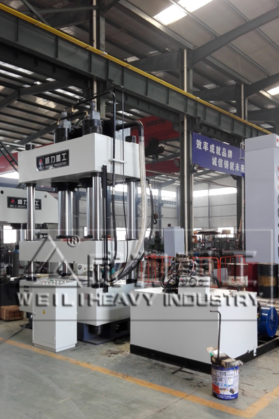 液壓機(jī)由主機(jī)及控制機(jī)構(gòu)兩大部分組成。液壓機(jī)主機(jī)部分包括機(jī)身、主缸、頂出缸及充液裝置等。動(dòng)力機(jī)構(gòu)由油箱、高壓泵、低壓控制系統(tǒng)、電動(dòng)機(jī)及各種壓力閥和方向閥等組成。動(dòng)力機(jī)構(gòu)在電氣裝置的控制下,通過(guò)泵和油缸及各種液壓閥實(shí)現(xiàn)能量的轉(zhuǎn)換,調(diào)節(jié)和輸送,完成各種工藝動(dòng)作的循環(huán)。液壓缸:將液壓能轉(zhuǎn)化為機(jī)械能液壓傳動(dòng)是利用液體壓力來(lái)傳遞動(dòng)力和進(jìn)行控制的一種傳動(dòng)方式。液壓裝置是由液壓泵,液壓缸,液壓控制閥和液壓輔助元件。山東威力重工機(jī)床有限公司根據(jù)客戶需求定制非標(biāo)液壓機(jī)。如下圖參考